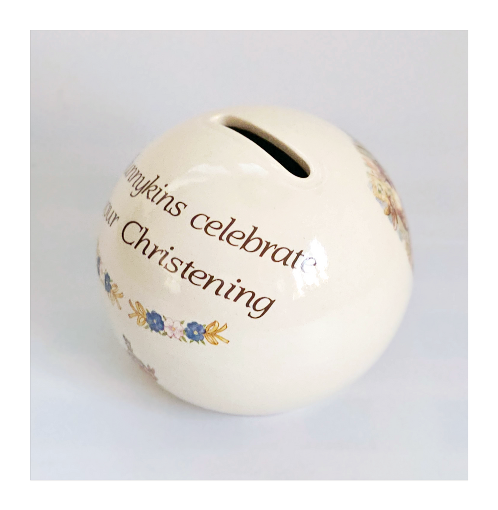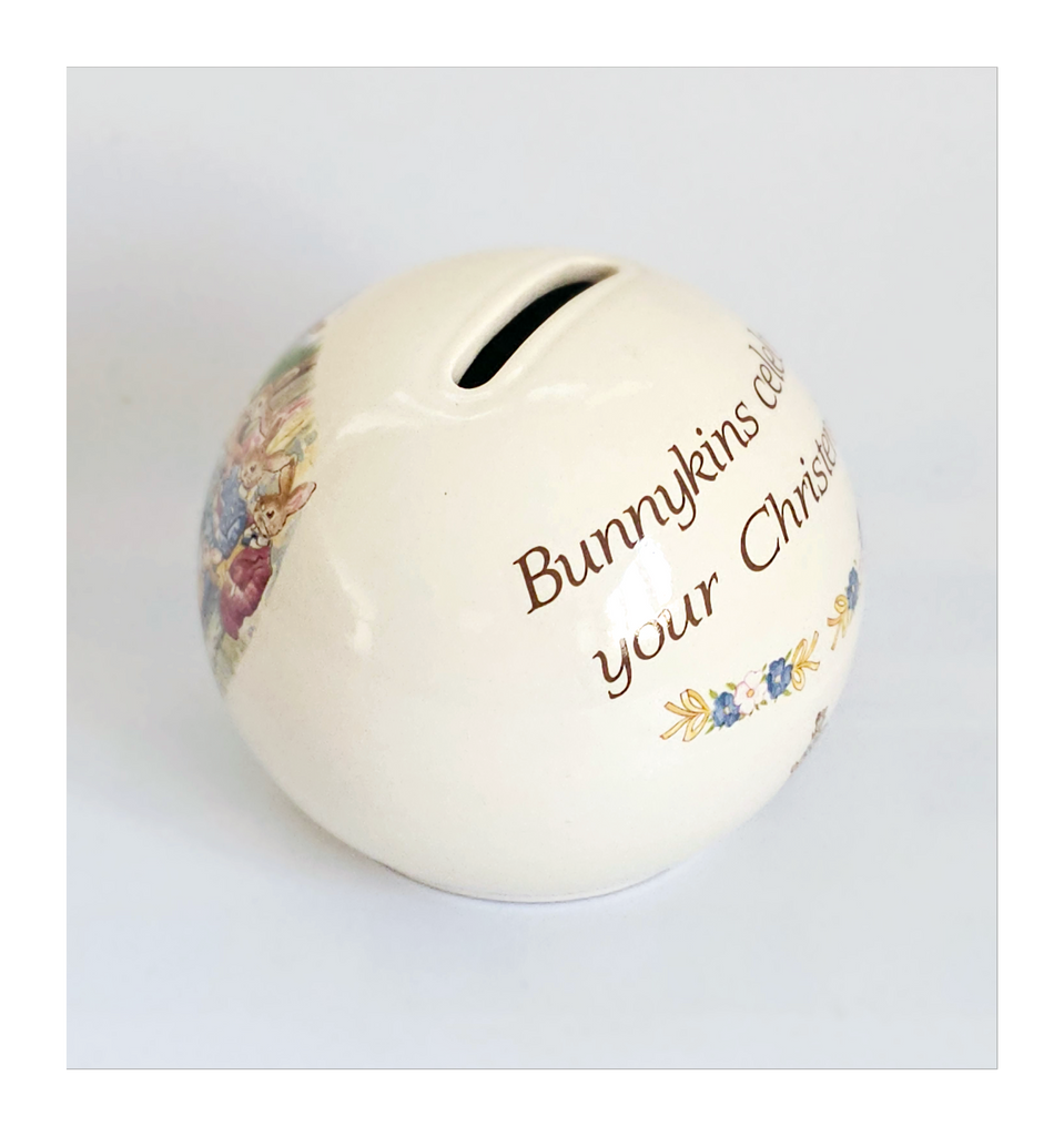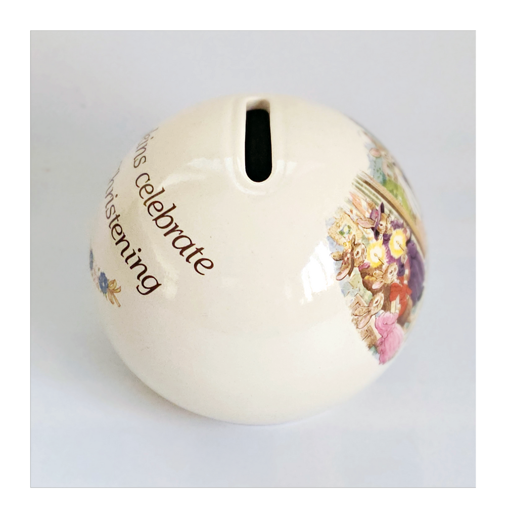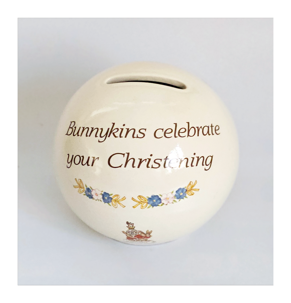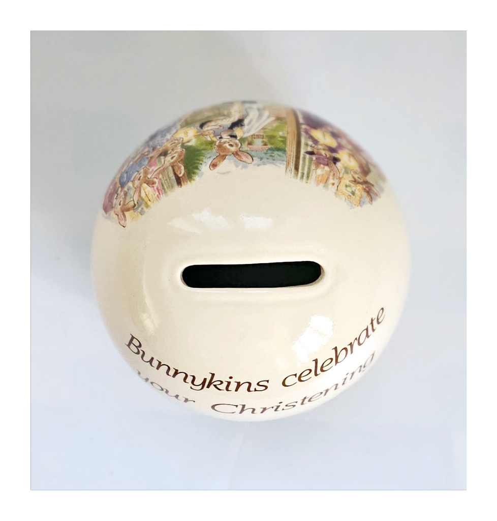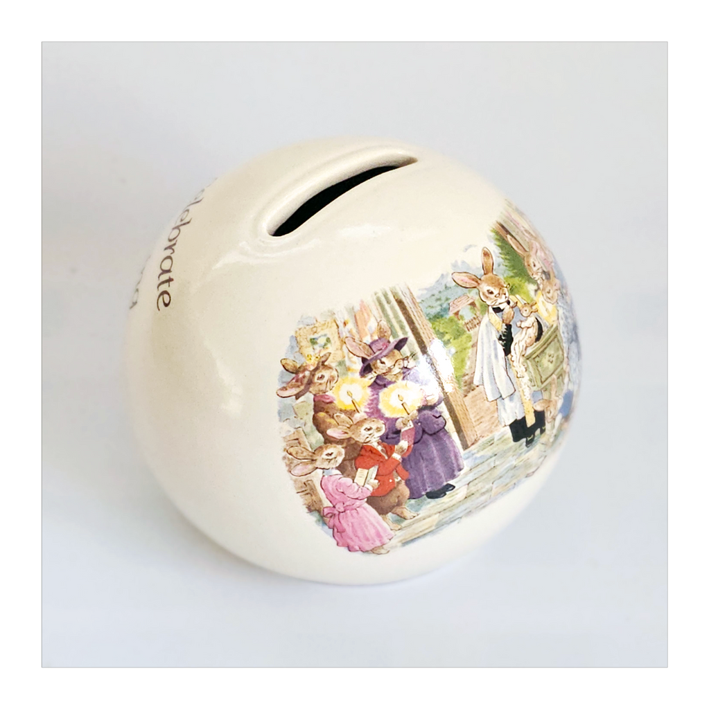 Vintage 1960's Royal Doulton Bunnykins Fine Bone China Piggy Bank "Bunnies Attending Christening Ceremony" Christening Present