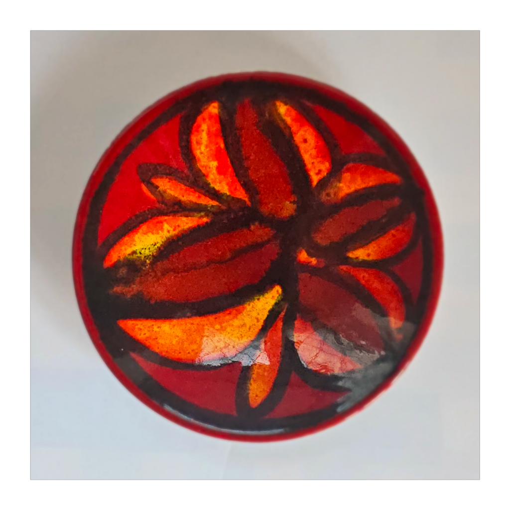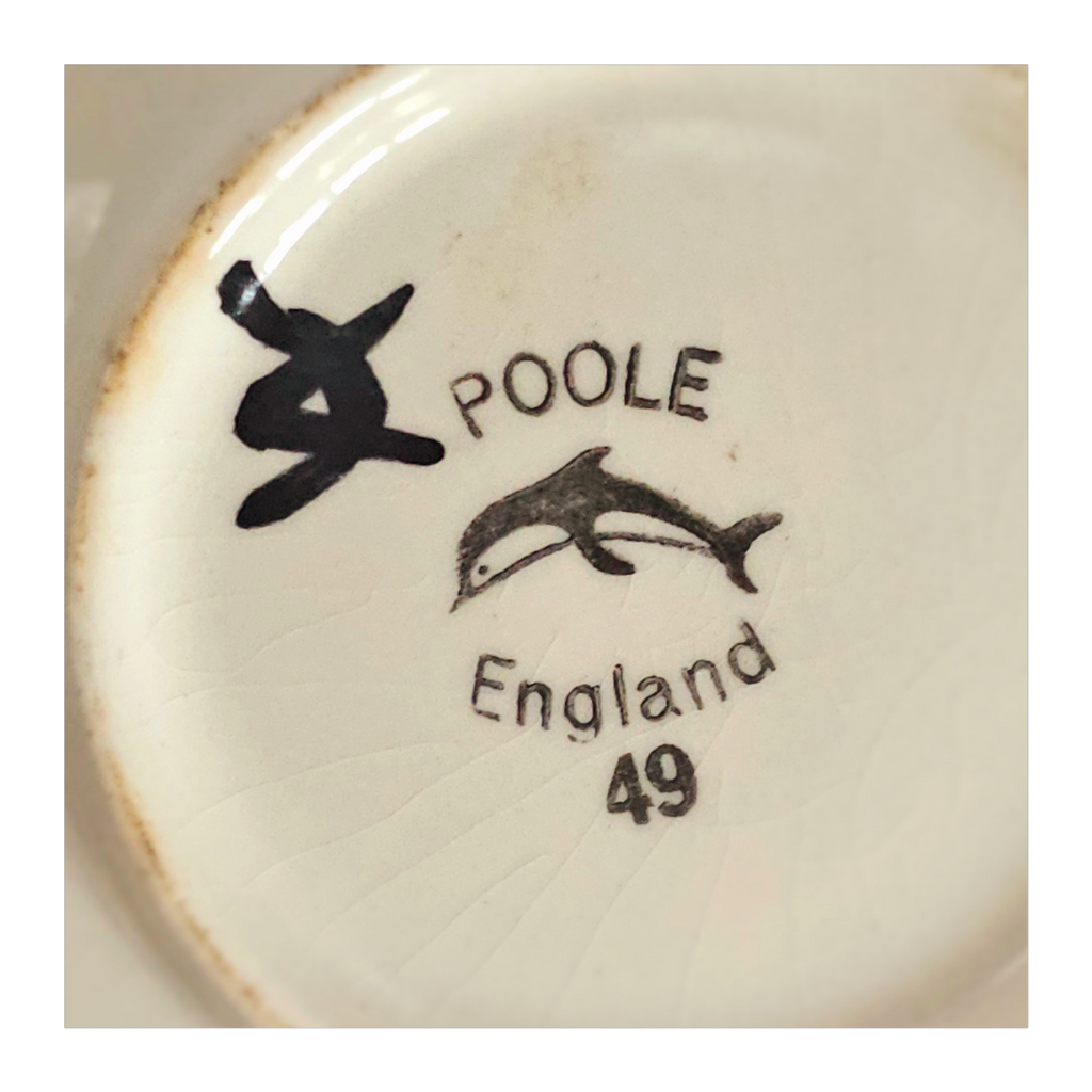 A rare vintage 1950's hand painted studio pottery pin dish by Poole Pottery in Delphis Pattern No. 49 signed by the artist. It weighs 163 g. Its measurements are 12.5 cm diameter, and 2 cm height. In excellent condition, no chips, no cracks, and no restoration. A great addition to your Poole Pottery / Pin Dish collection. Collectable. Collector's item.