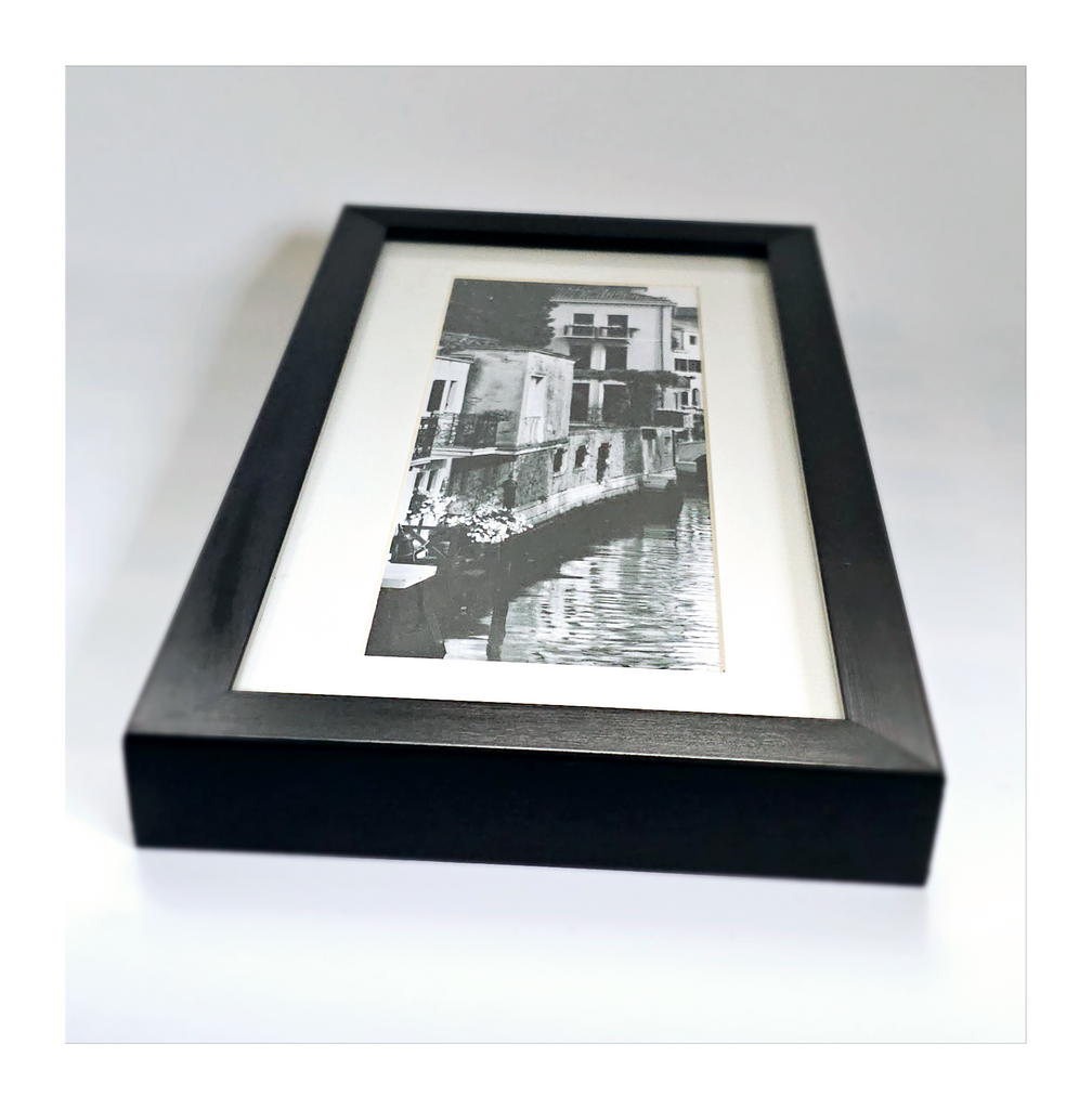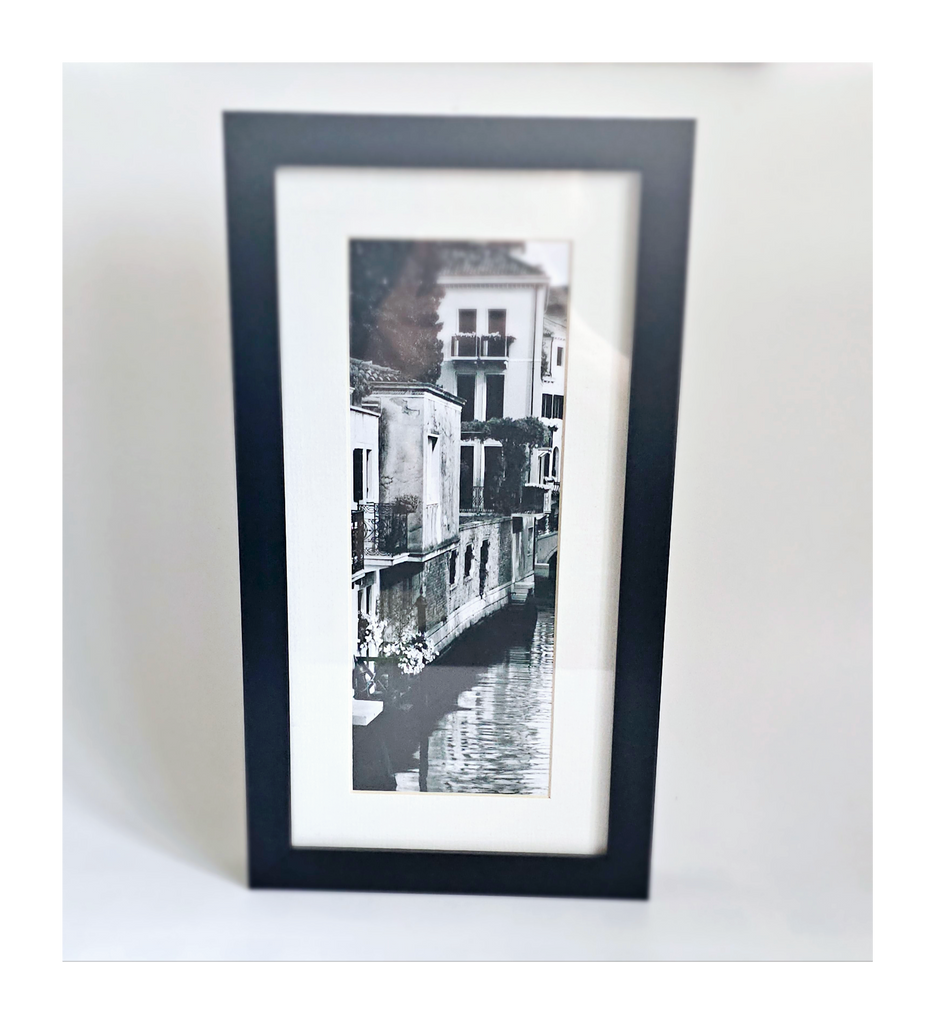 Alan Blaustein's Black and White high quality Photo print Beautifully Framed in Contemporary Style. One of eight from The Italian Collection - Ponti Di Venezia IV. It weighs 681g. Its measurements are 28.3 cm height, 23.3 cm width and 3.3 cm depth. In excellent condition. A great addition to your collectable black and white photo prints by famous photographers. Collectable. Collector's item.