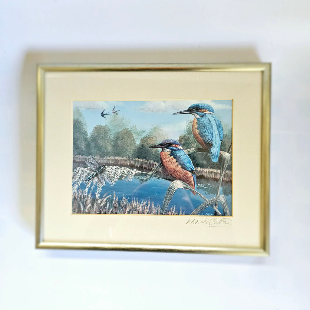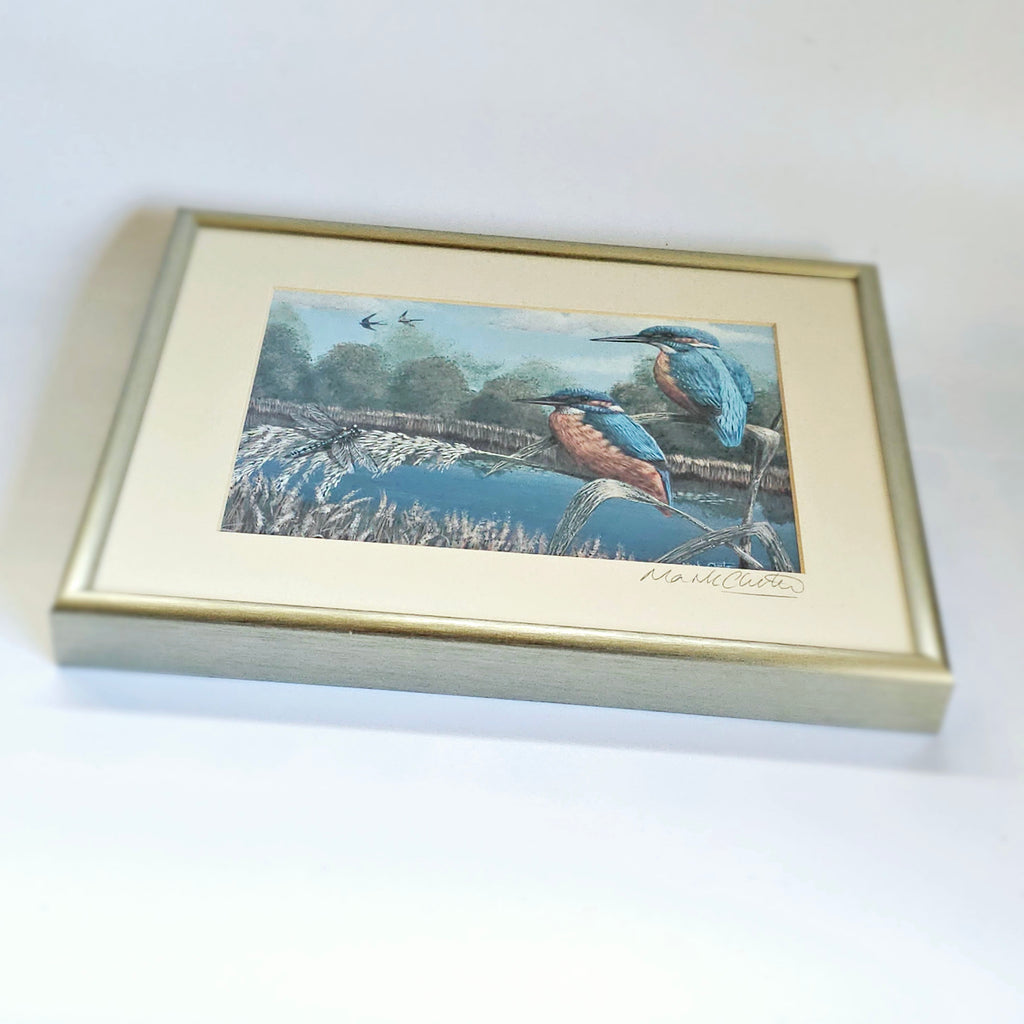 Beautifully Framed Painting of Two Kingfisher Birds Signed by the Wildlife Artist, Mark Chester