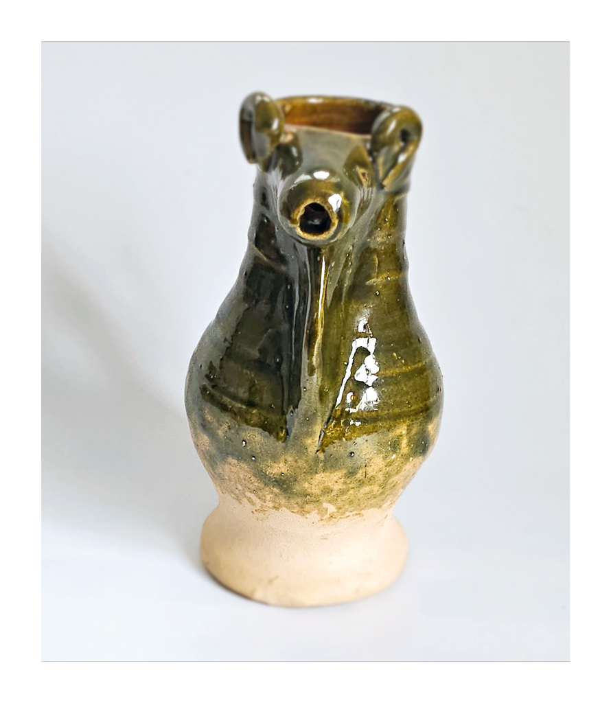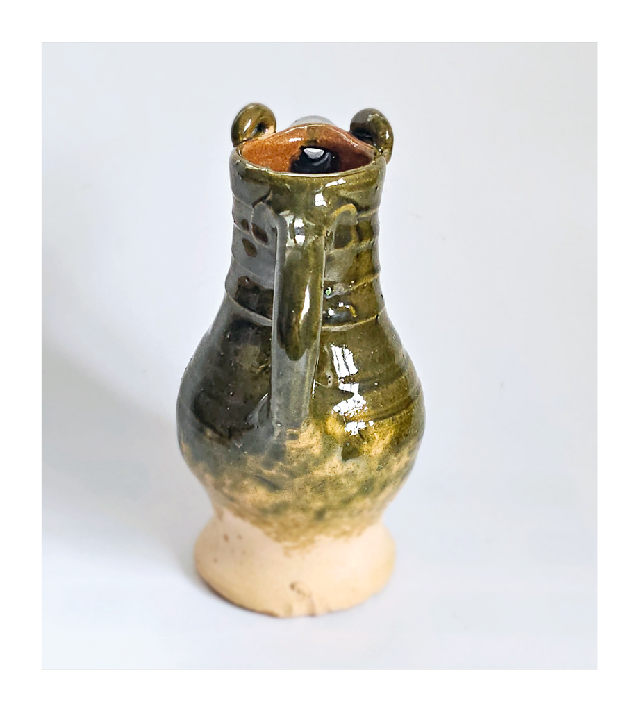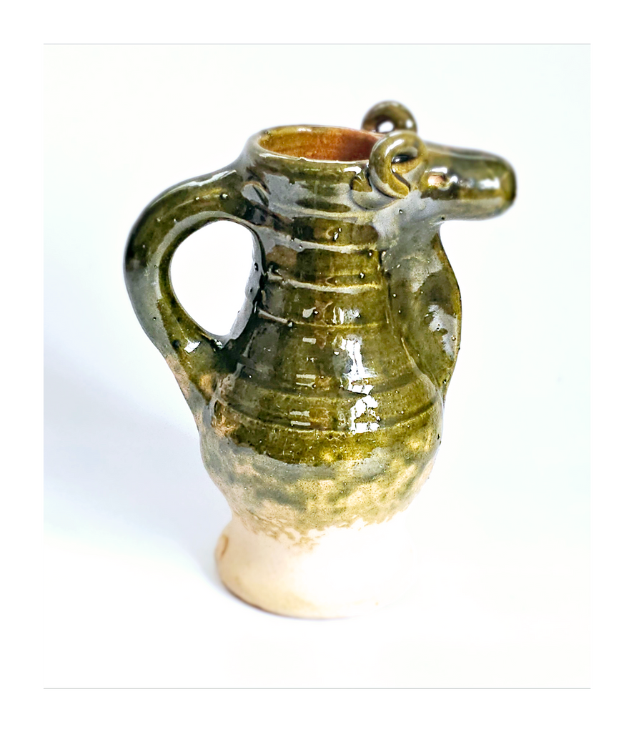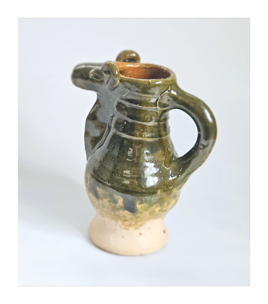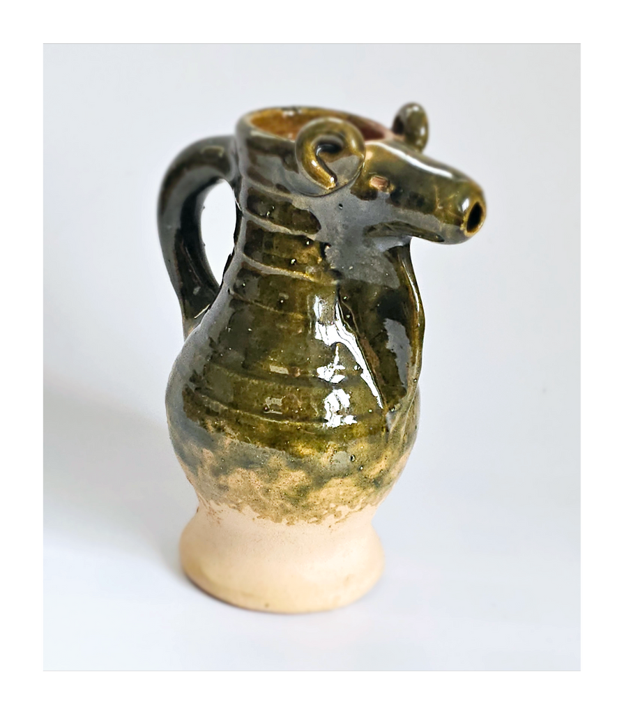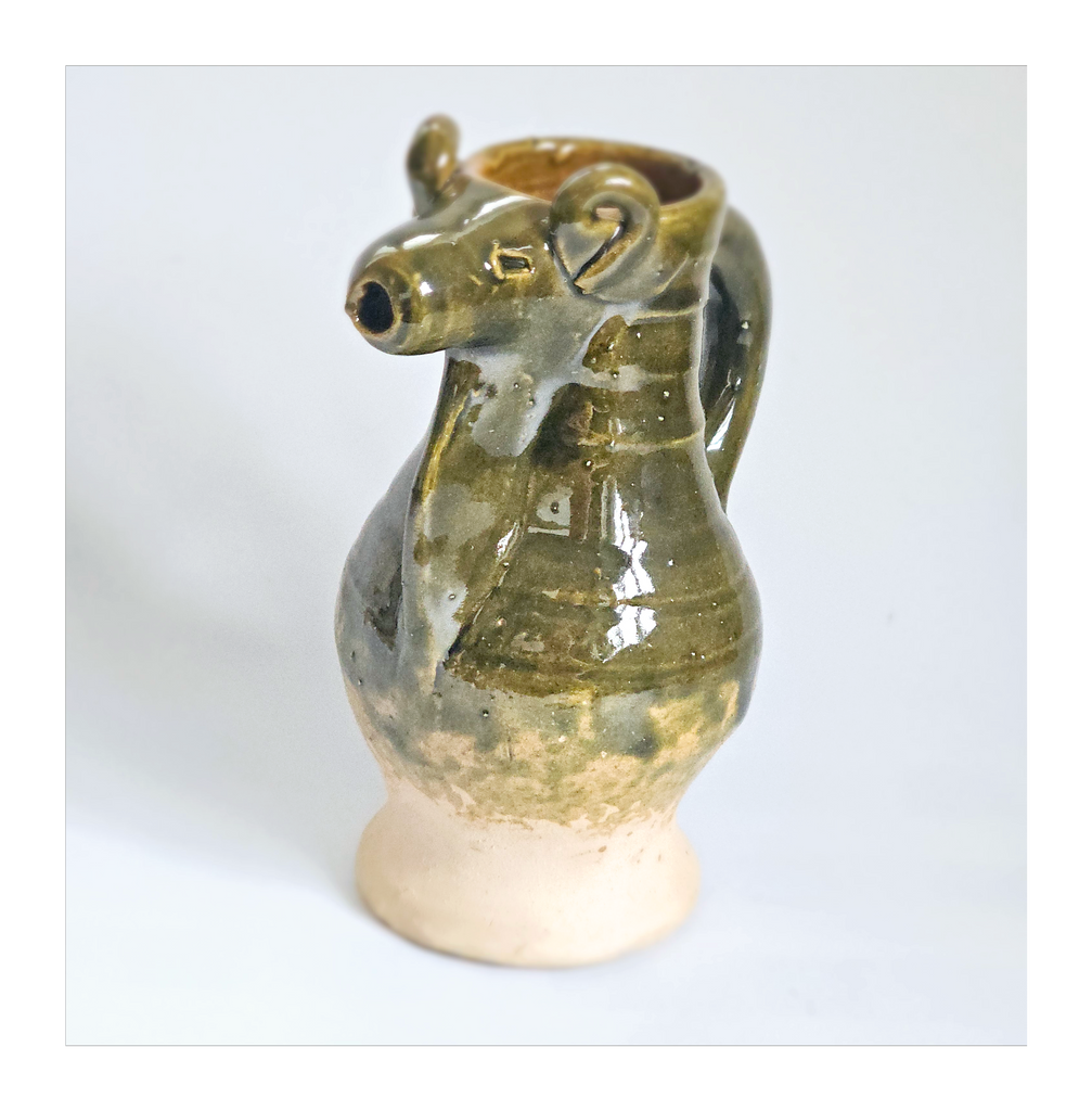 Rare Hand Made Earthenware Glazed Ceramic Creamer / Milk Jug with Nuzzle in Shape of a Ram's Head