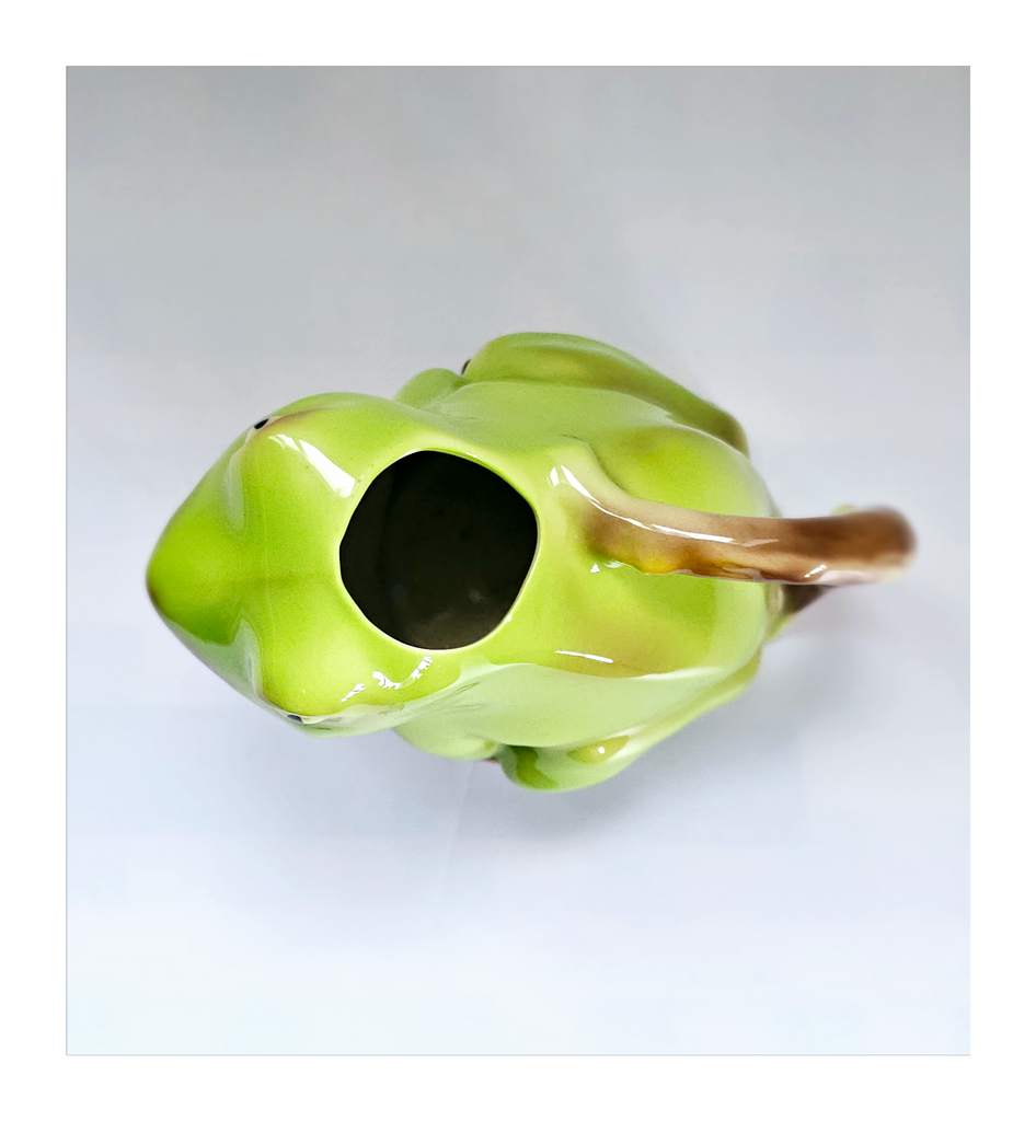 A rare vintage 1980's Tony Wood Studio Pottery glazed ceramic Frog Creamer / jug / pitcher. It weighs 246 g. Its measurements are 14 cm length, 8 cm width and 10 cm height. In excellent condition, no chips, no cracks and no restoration. A great addition to your Tony Wood Pottery / Novelty Creamer / Jug collection. Collectable. Collector's item.