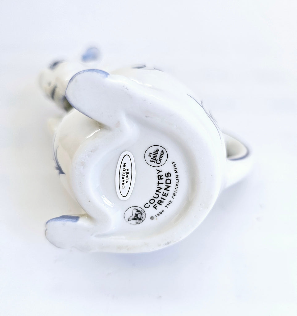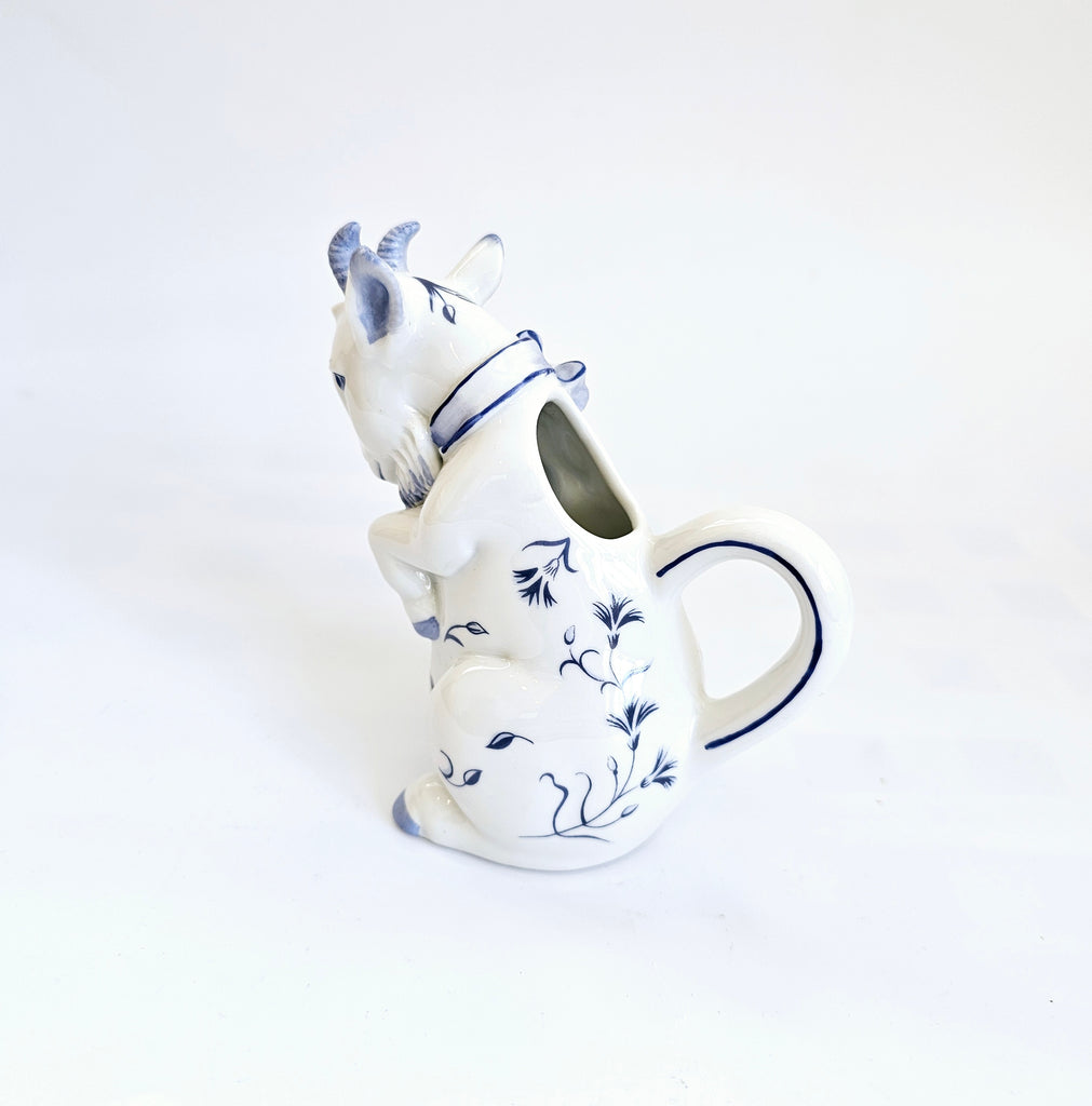 Vintage 1980's Franklin Mint Country Friends by Hallie Greer Ceramic Goat Creamer / Milk Jug in Delft Blue and White Style