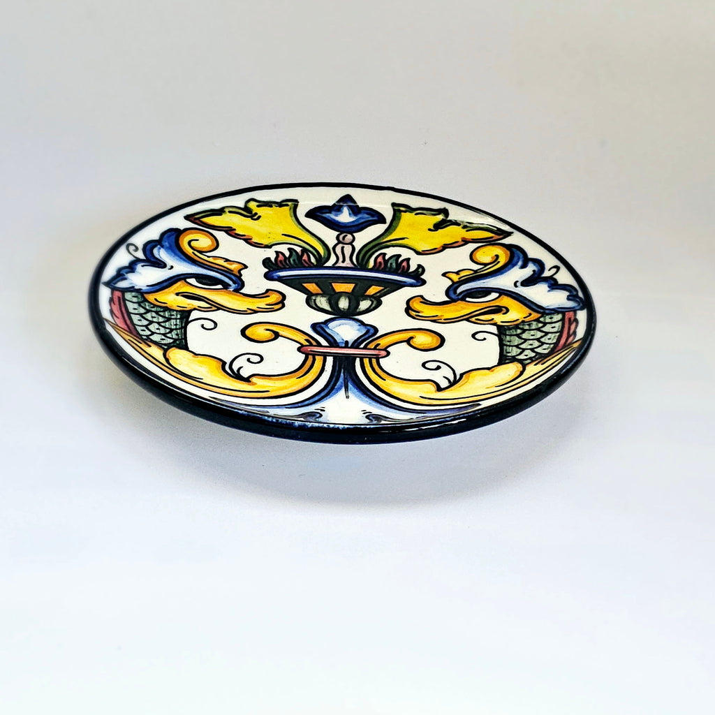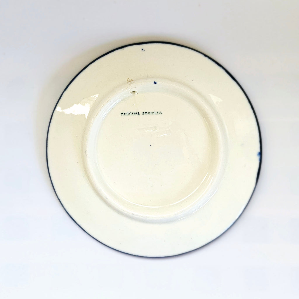 A Vintage Hand Painted Spanish Majolica Pascual Zorrilla Ceramica Studio Pottery Decorative Wall Plate. It weighs 257g. Its height is 2 cm, its diameter is 17.8 cm. In excellent condition, no crazing, no chips, no restoration. A great addition to your Majolica Ceramic Decorative Plate Collection. Collectable. Collectors' Item.