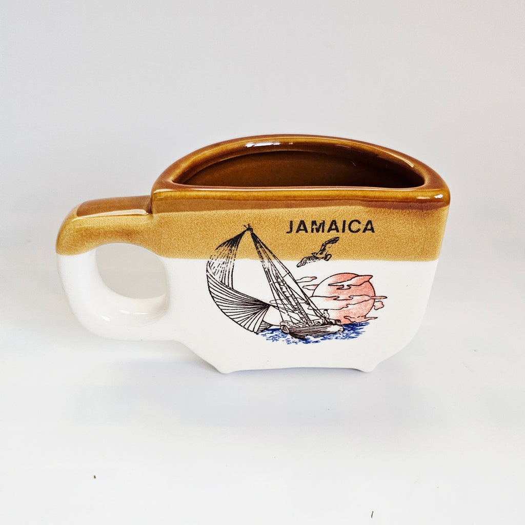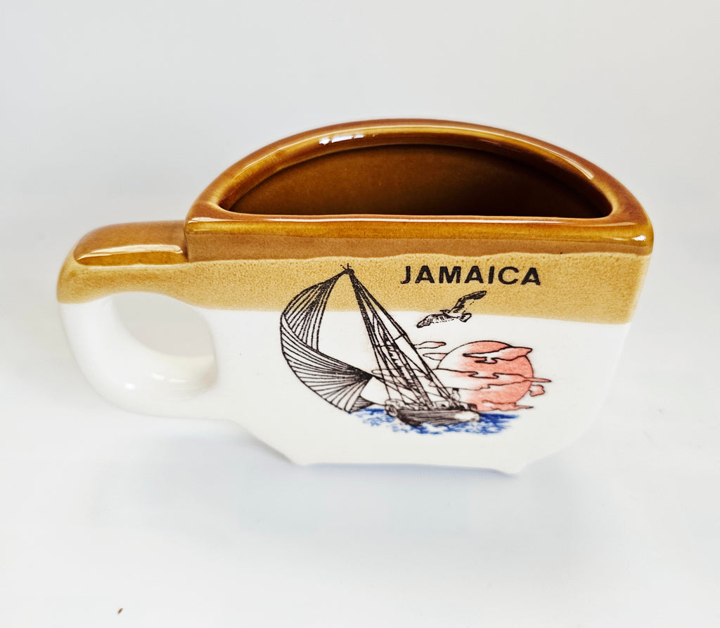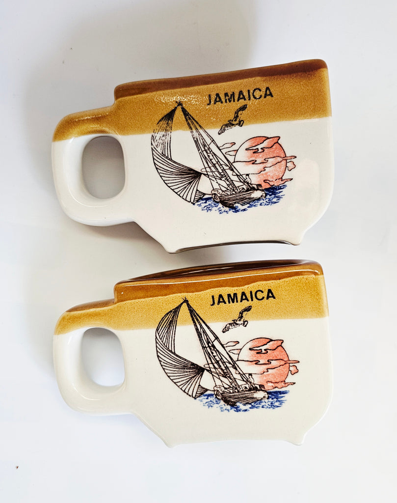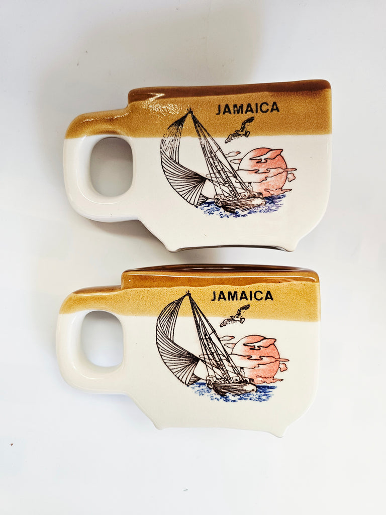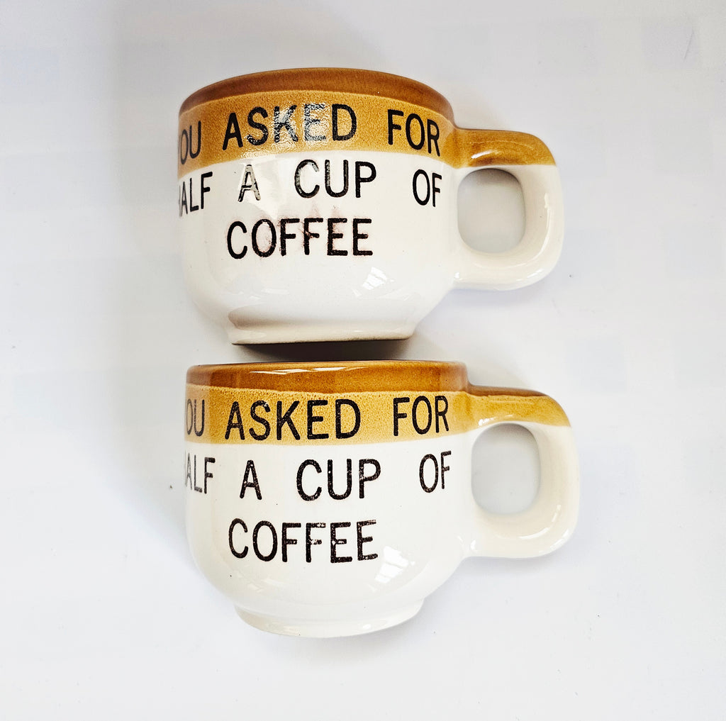Vintage 1980's Novelty Two Half Coffee Cups / Mugs From Jamaica with the Caption "YOU ASKED FOR HALF A CUP OF COFFEE"