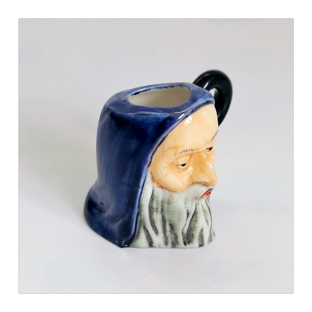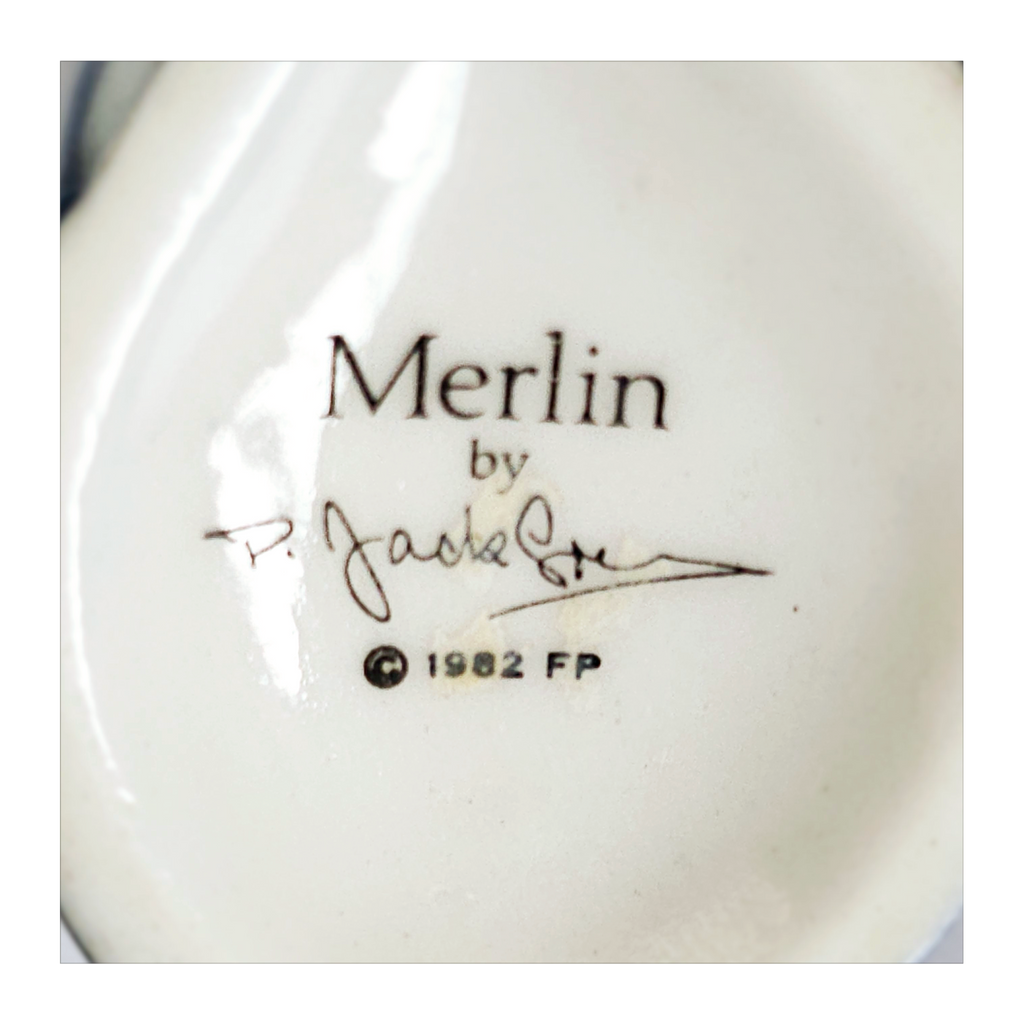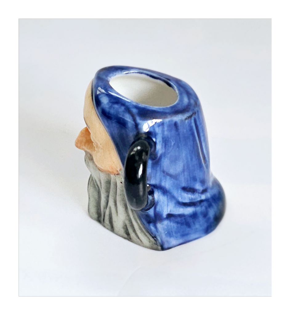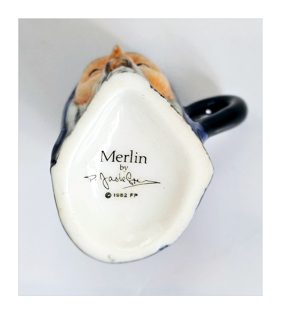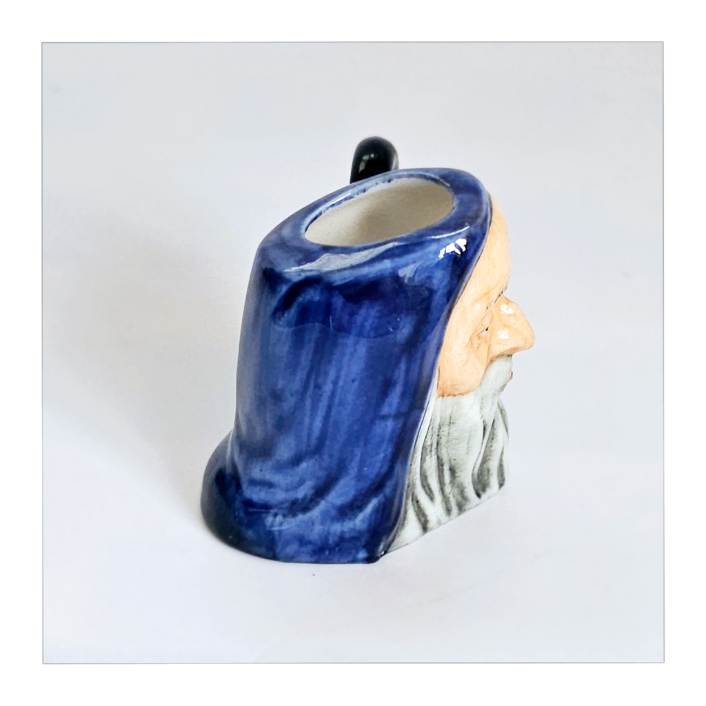 Vintage 1980's Glazed Ceramic Merlin Miniature Toby Jug / Character Jug Signed Peter Jackson by Franklin Mint