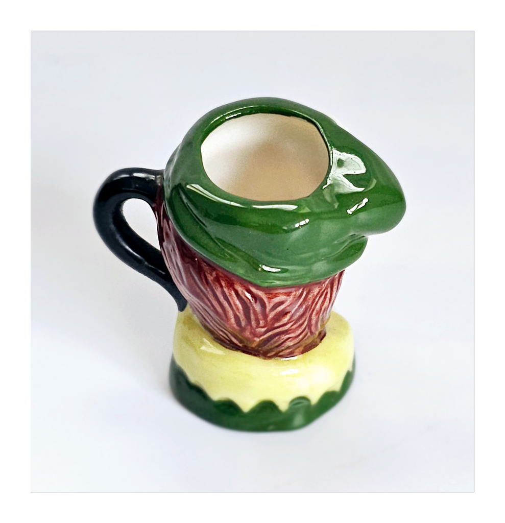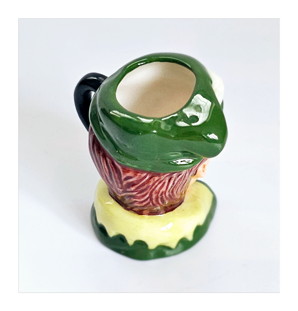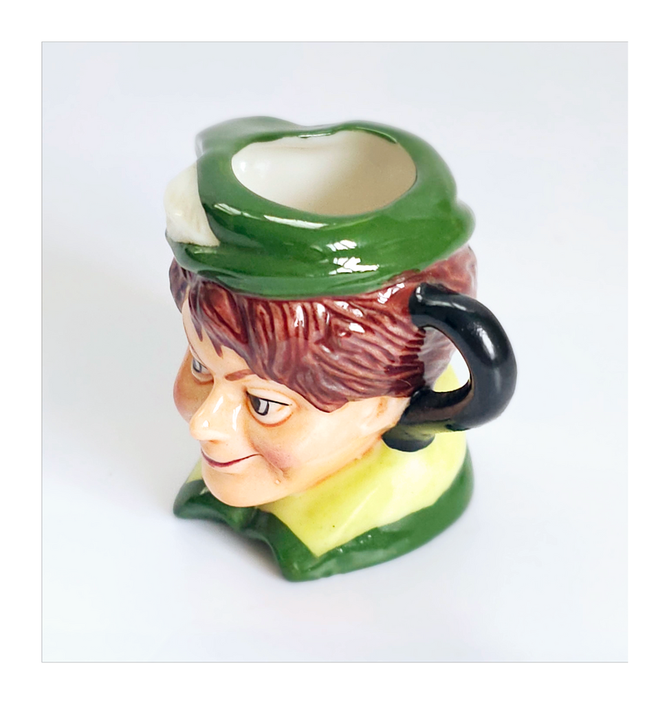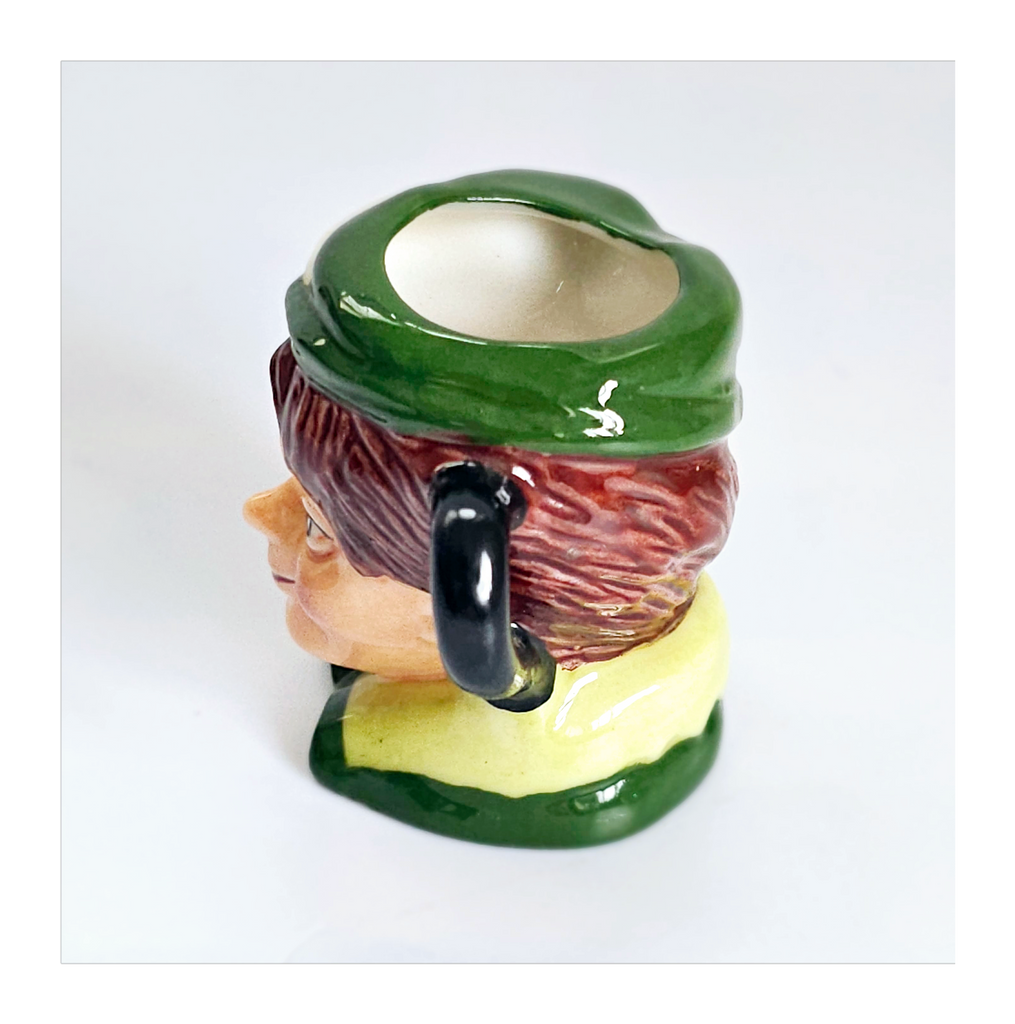 A vintage 1980's glazed ceramic Peter Pan miniature Toby Jug / Character Jug signed Peter Jackson by Franklin Mint. It weighs 30 g. Its measurements are 4.5 cm width at its widest and 4 cm height. In excellent condition, no chips, no cracks and no restoration. A great addition to your Toby Jug / Character Jug collection. Collectable. Collector's item.