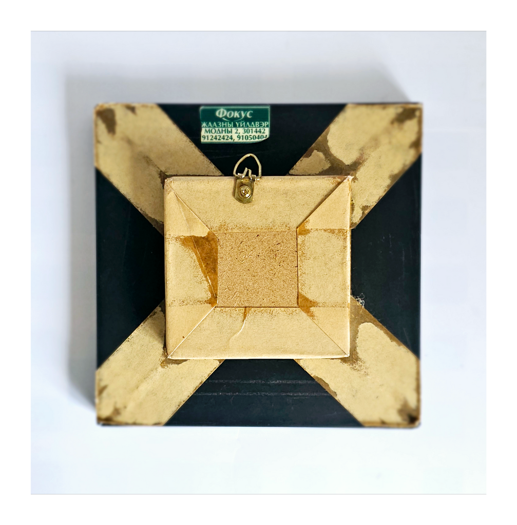 A Buddhist Double Dorje Varja Spiritual Power Gold Plated Pendant in a Beautiful Wooden Frame. The label in the back is in Russian, so it is probably made in Russia. It weighs 332 g. Its measurements are 18.5 cm height, 18.5 cm width and 3.5 cm depth. In excellent condition, no chips, no scoffs. A great addition to your Buddha Spiritual items collection. Collectable. Collector's item.