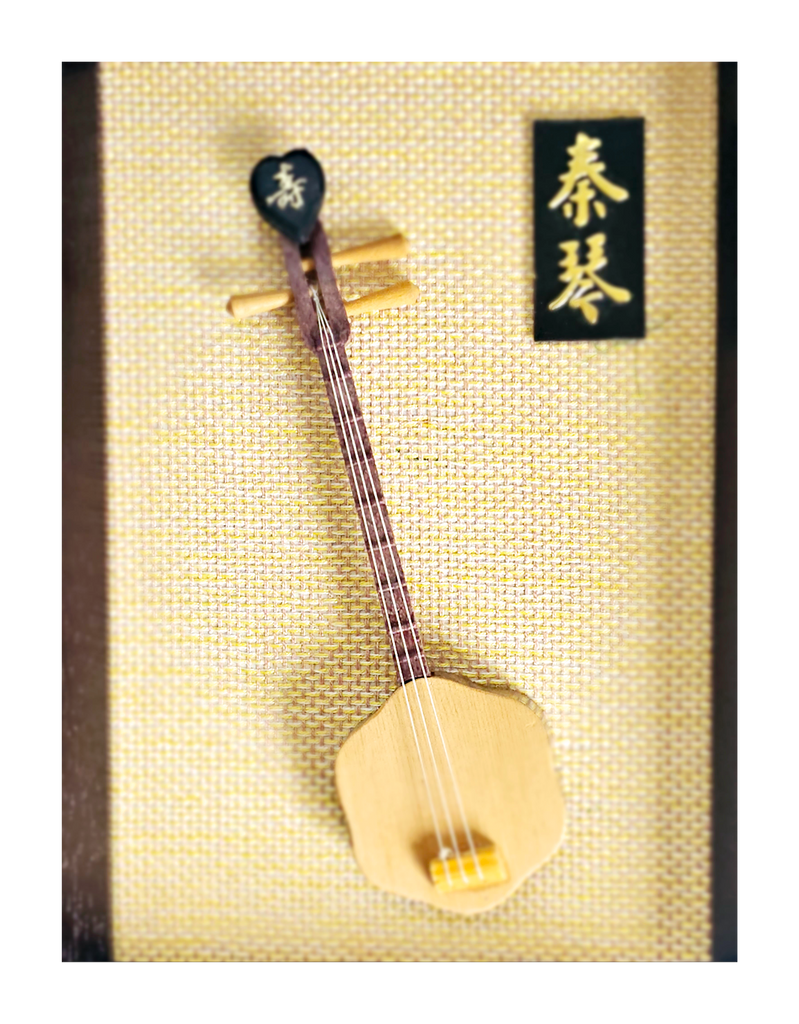 A rare vintage 1970's framed miniature Chinese musical instrument. It weighs 154 g. Its measurements are 14 cm width, 19.5 cm height, and 2.7 cm depth. In excellent condition. Makes a great addition to your Wall Art collection. Collectable. Collector's item.