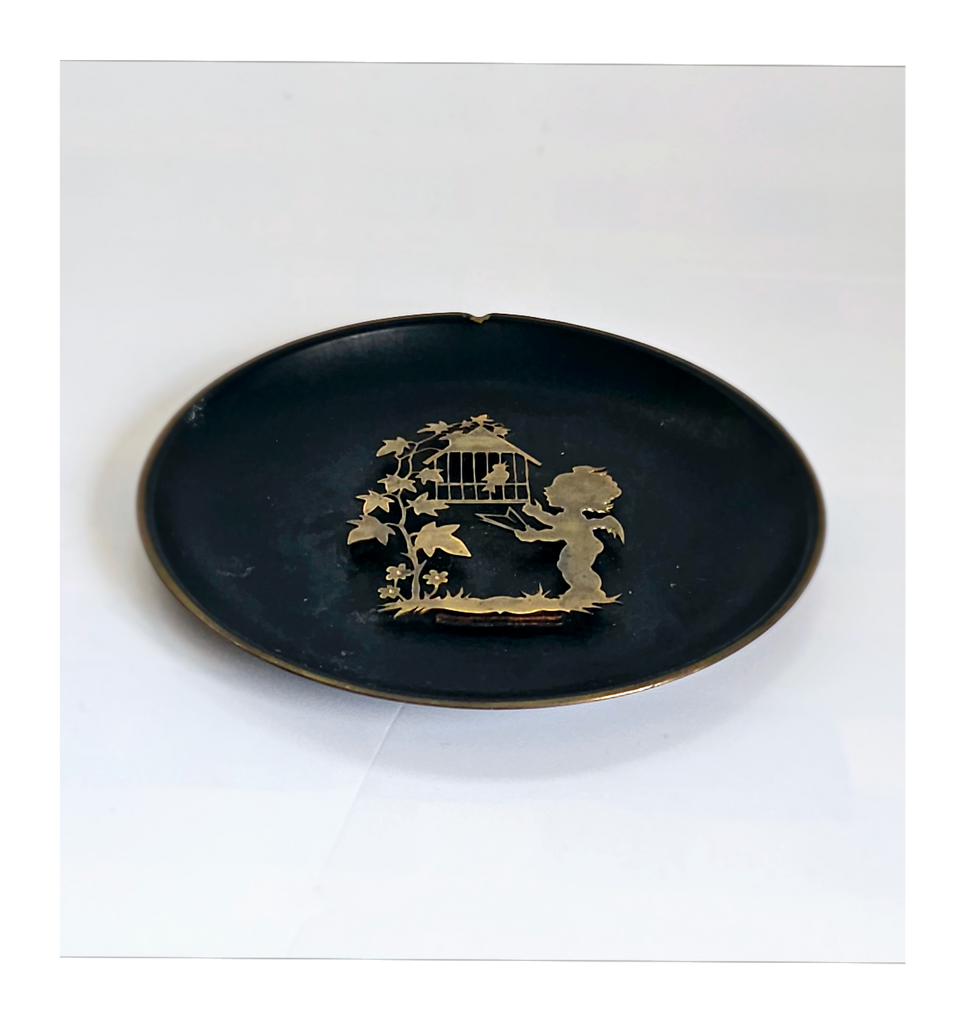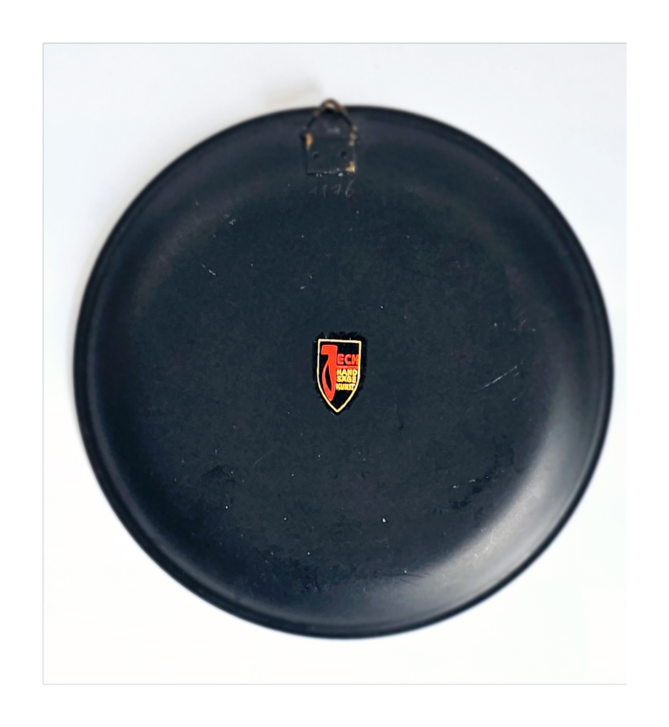 A vintage 1950's brass Jech hand made signed wall art from Germany. It weighs 54 g. Its measurements are 11.8 cm diameter and 0.5 cm height. In good vintage condition with a tiny dent on the top part of the rim as shown in the image and reflected in the price. A great addition to your Wall Art collection. Collectable. Collector's item.