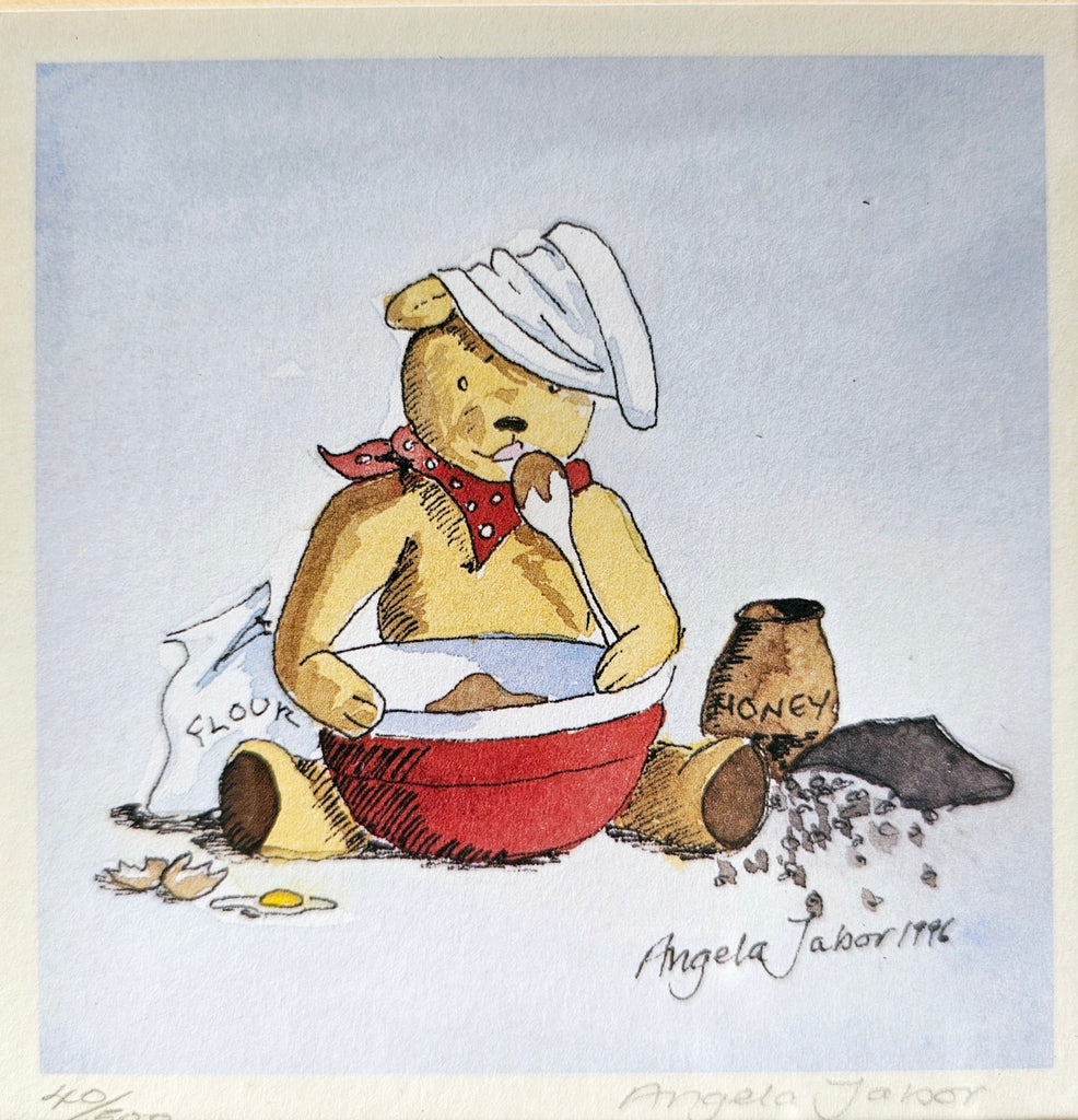 A rare vintage 1996 framed limited edition signed and numbered (40/500) original lithograph print of Disney's Winnie The Pooh and The Honey by Angela Jabor. It weighs 305 g. Its measurements are 22cm width, 22cm height and 1cm depth. In excellent condition. A great addition to your original lithograph prints / Limited Edition collection. Collectible. Collector's item.