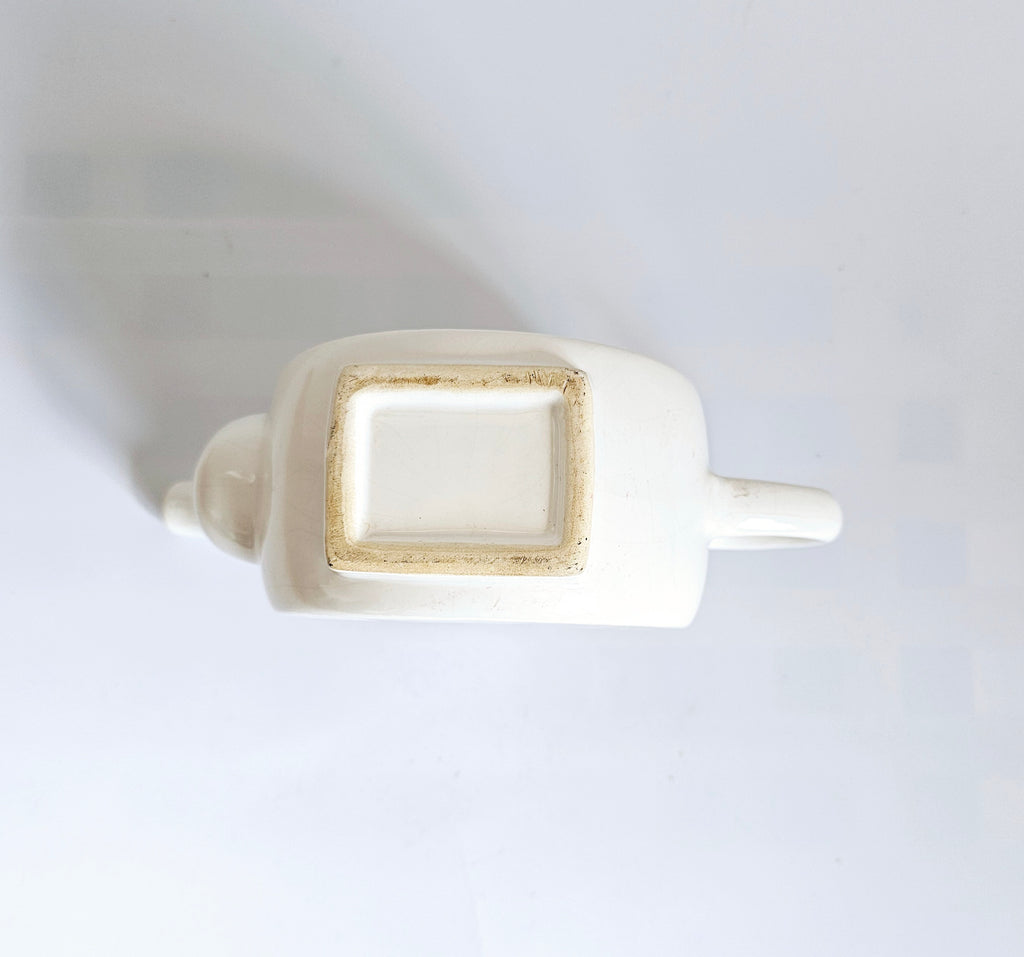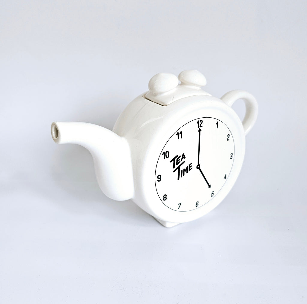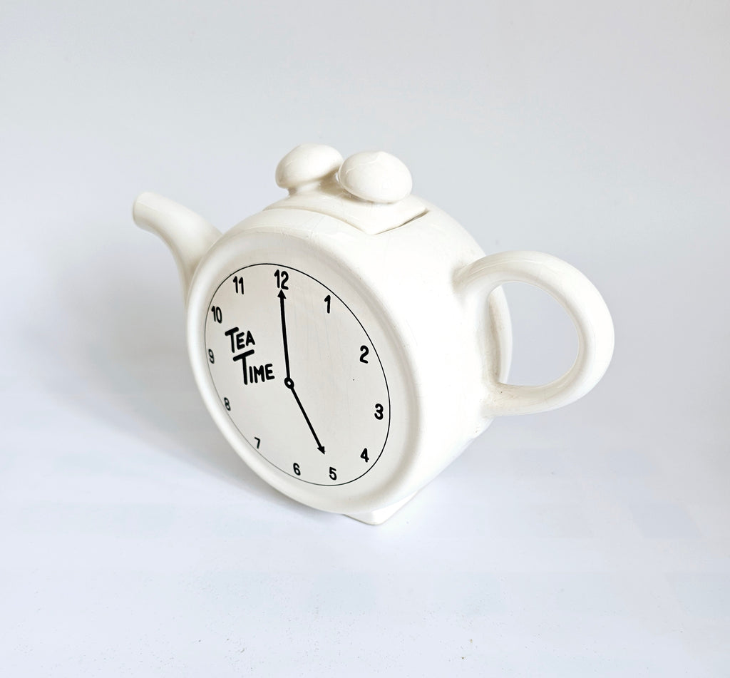 A novelty ceramic Tea Time clock face Teapot. In excellent condition, no cracks, no chips, no restoration. It weighs 350g, its measurements are 20cm wide at its widest, 12cm height. A great addition to your teapot / Novelty Items collection. Collectible. Collector's item.