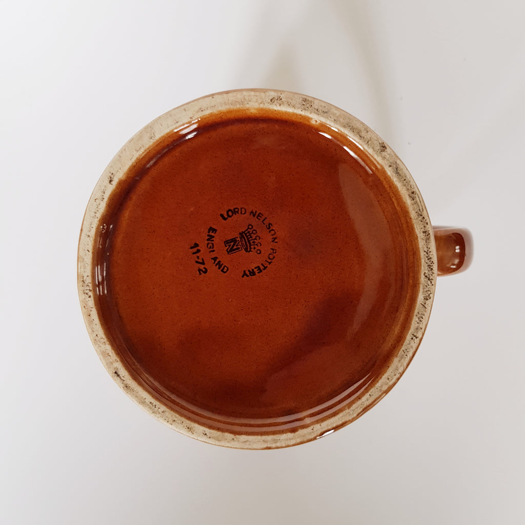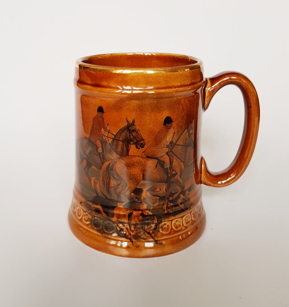 A vintage Lord Nelson Pottery fox hunting scene beer mug / tankard. A great addition to your Beer Mug / Tankard collection. It weighs 0.6 kg. Its measurements are Height 12.2 cm, Diameter 11 cm at its widest. In perfect condition, no cracks, no chipping. Collectable. Collectors' item.