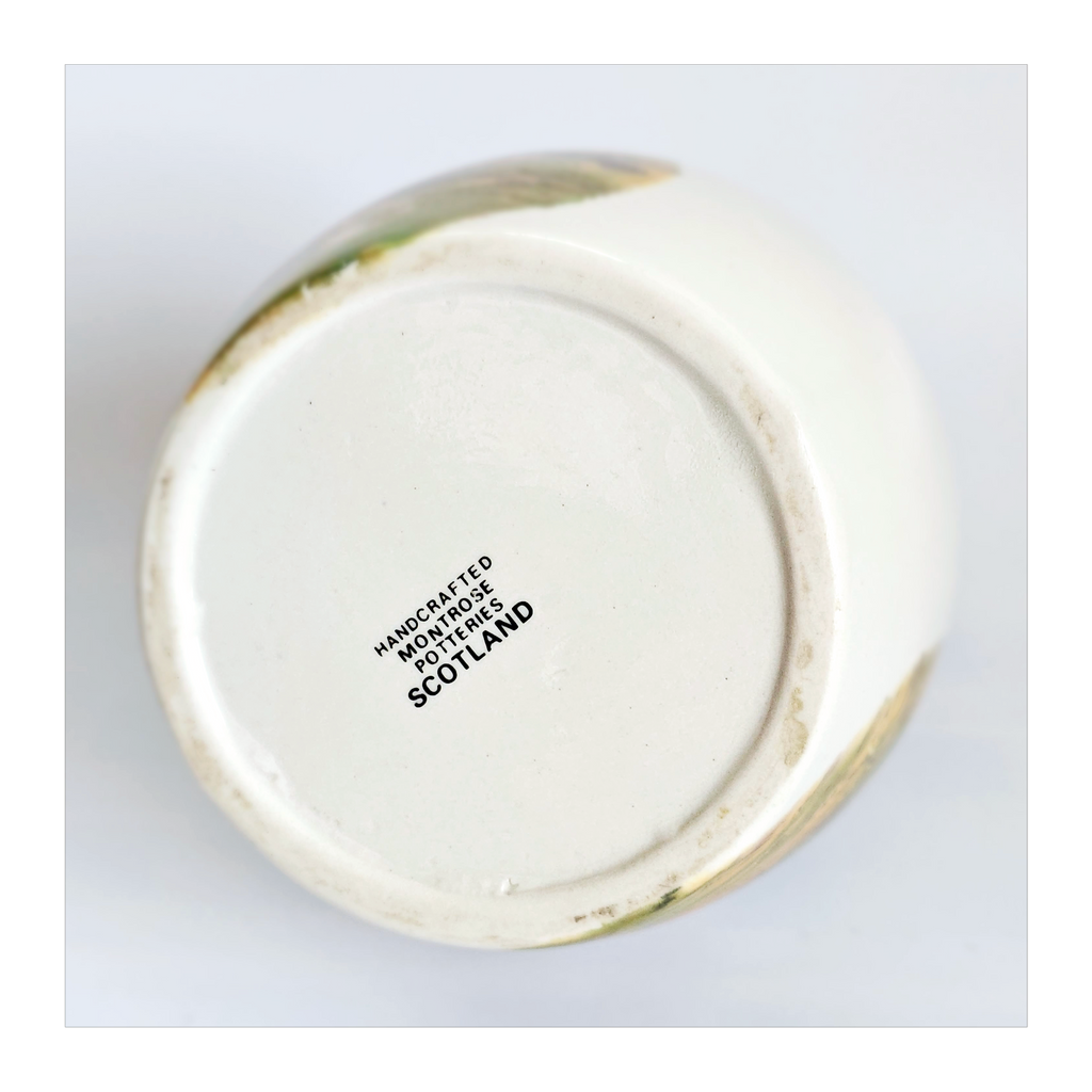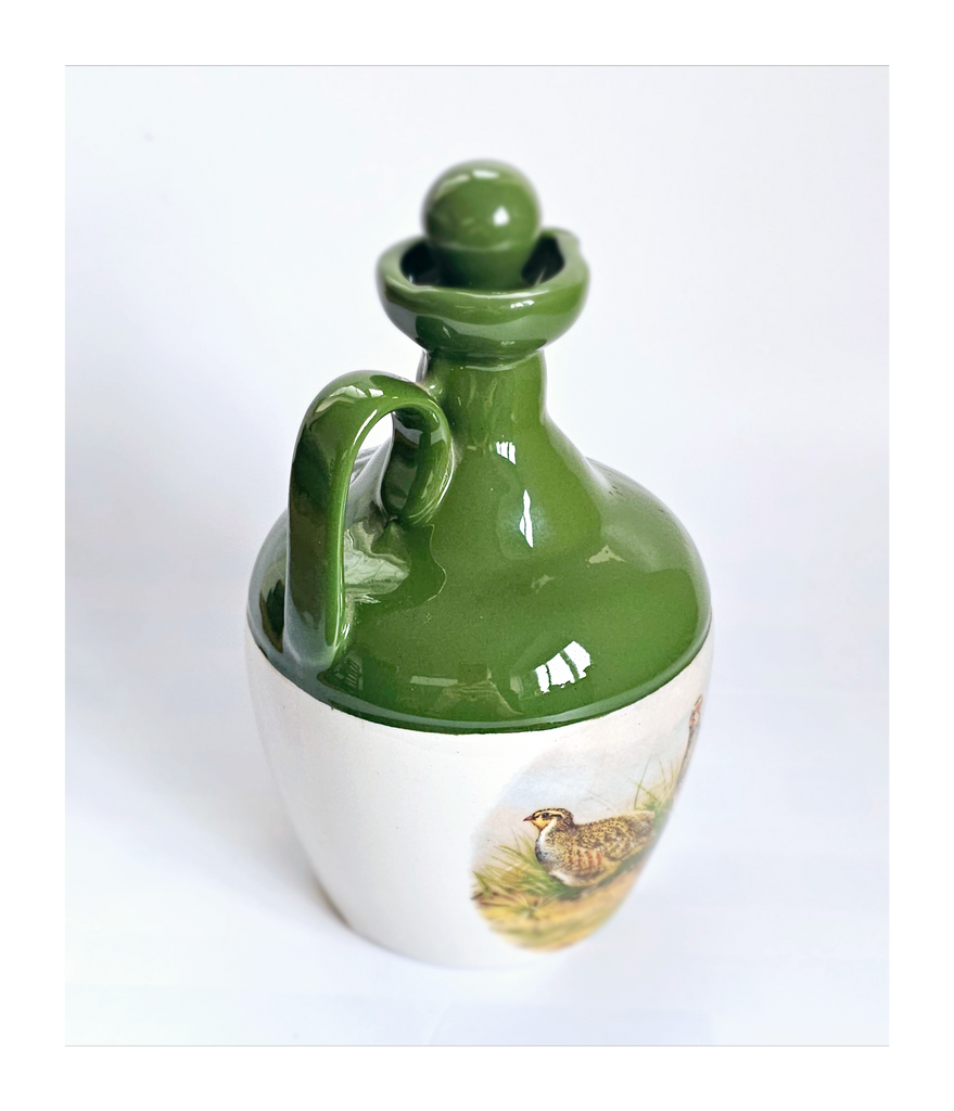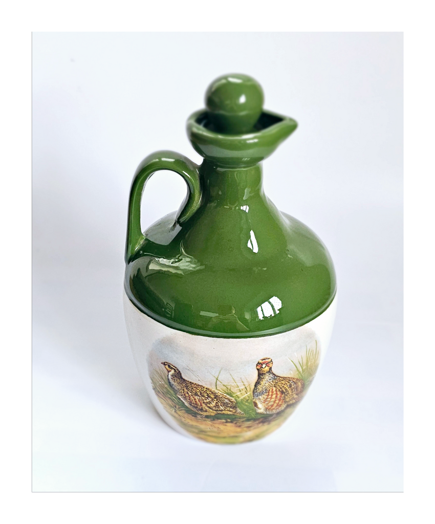 A vintage Scotland Montrose Potteries hand crafted stoneware pheasant grouse quail pitcher / decanter / flagon / jug. It weighs 669 g. Its measurements are 4.5 cm diameter at the top, 8.5 cm diameter at the bottom, 12 cm width at its widest, and 20 cm height. In excellent condition, no chips, no cracks and no restoration. A great addition to your Decanter / Pitcher / Jug collection. Collectable. Collector's item.